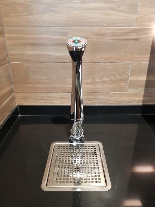 Here you see our Brita ViTap 305 (Vi2H) being fitted with our Brita ViTap Plus extension kit. This kit modifies the standard Brita ViTap font by having an additional stem that makes the clearance from the spout to counter top further to 340mm. This allows users to fill larger bottles or containers. A larger drip tray is installed to cater for accidental spillage due to the higher clearance.